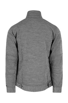 Fin lusegrå melert jakke med tre lommer forran med glidelås.