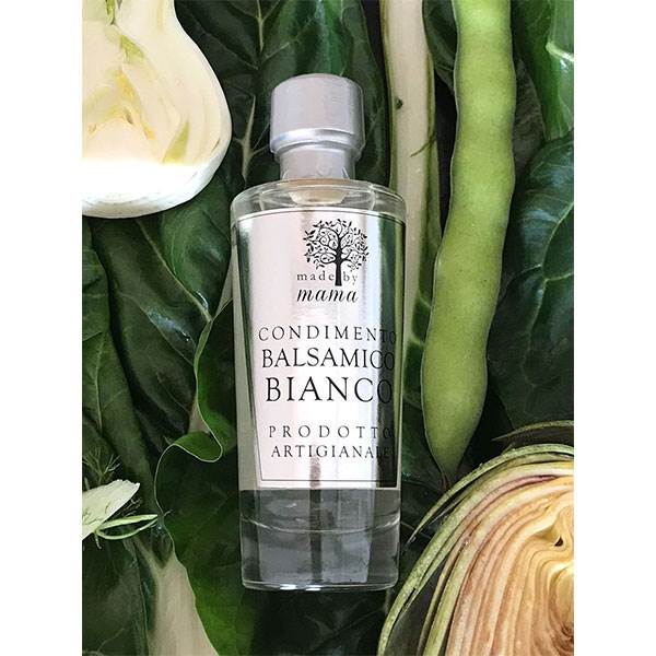 Den hvite balsamicoeddiken er et av de høyt verdsatte produktene på kjøkkenet mitt. Den er laget av druesorten Trebbiano og har blitt lagret i fem år på fat av asketre. Asketreet gir balsamicoen duft og smak uten å endre lysfargen. Den hvite balsamicoeddiken har en intens balsamicosmak og er samtidig søt og mild. Her i huset bruker vi den i dressinger, til salater (den farger ikke salaten), kalde supper og generelt retter som må rundes av med litt syre og sødme. Denne hvite balsamicoeddiken er et must på kjøkkenet vårt.