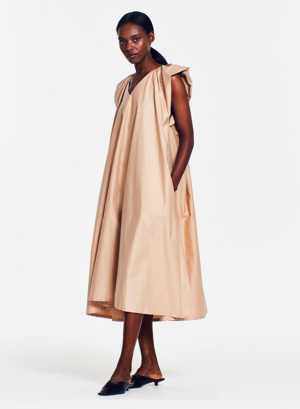 Fifi dress fra Norske One&other i en delikat beige/camel farge. Nydelig kjole i en myk og behagelig bomullskvalitet. Den er midi lengde, har v-hals og skulderkorte ermer. Kommer med belte slik at du kan bruke den løst og innstrammet i livet. Litt god på str. 100% Bomull