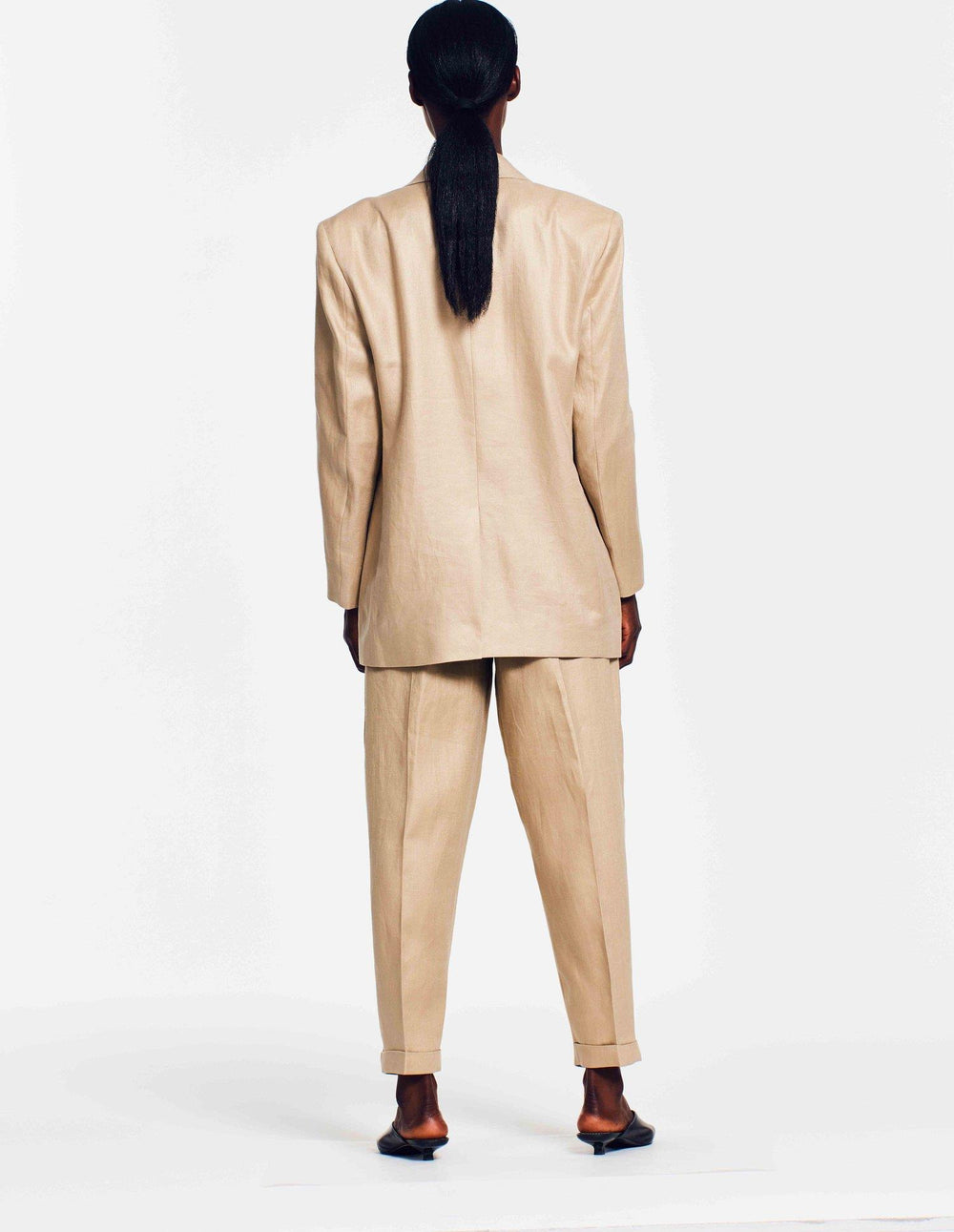 Råfin blazer i fargen Sand. Laget av det norske merket one & other. Blazeren er sydd inn i livet og med skulderputer.