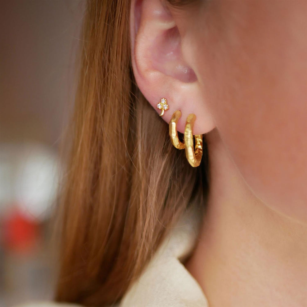 Stud Clover CZ er en dekorativ og unik ørering, som med sine tre glitrende zirkoner vises fint på øret. Kløveren betyr hell og er en perfekt gave til en du er glad i, eller til deg selv.