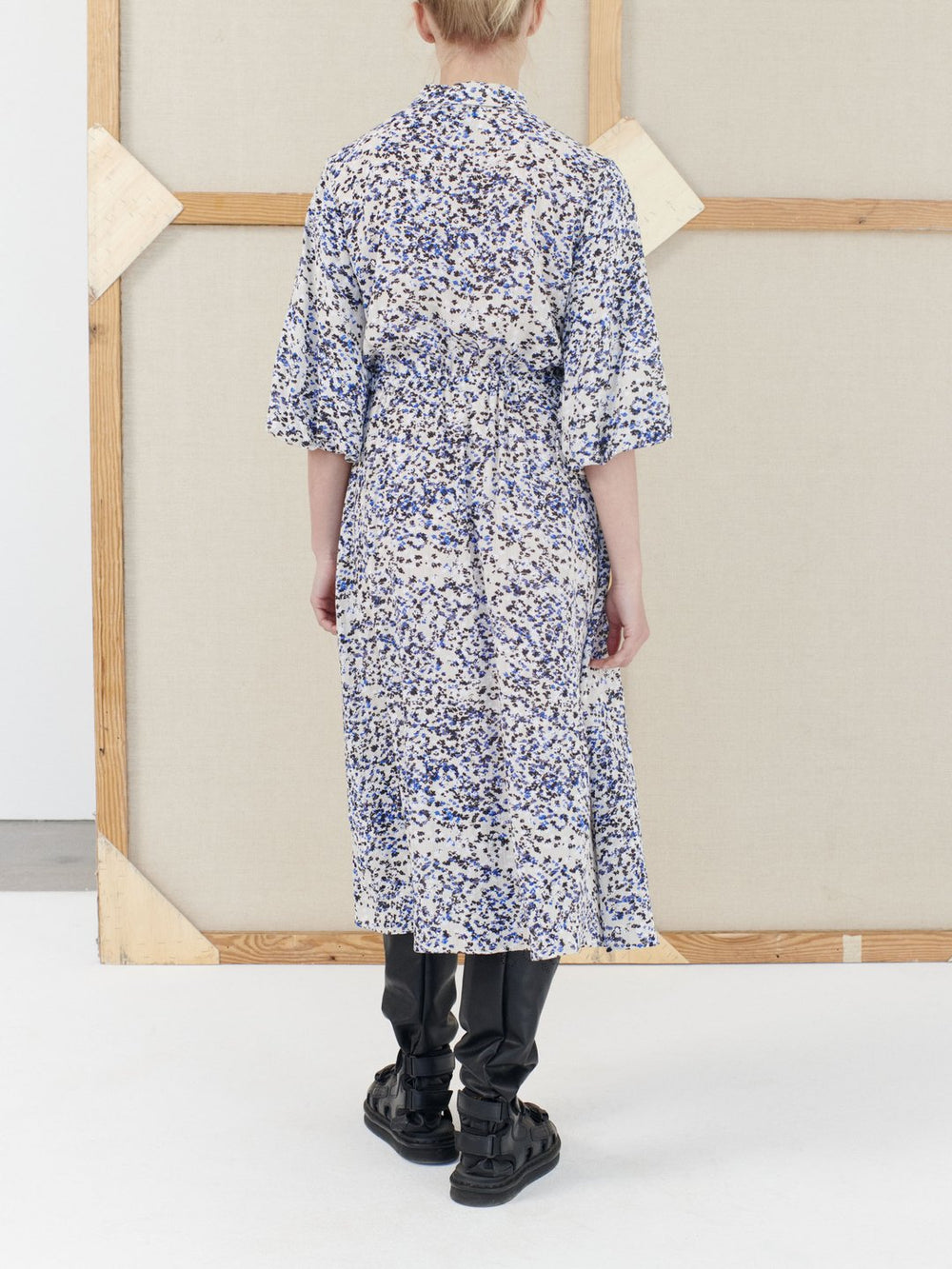 Midi-lang kjole fremstillet i en miljøvenlig viskoseblanding*. Kjolen har regulær pasform, trekvartlange ballonærmer, krave og knaplukning i front. Sidelommer og bindebånd i taljen. Fås i et smukt print i rød og blå.